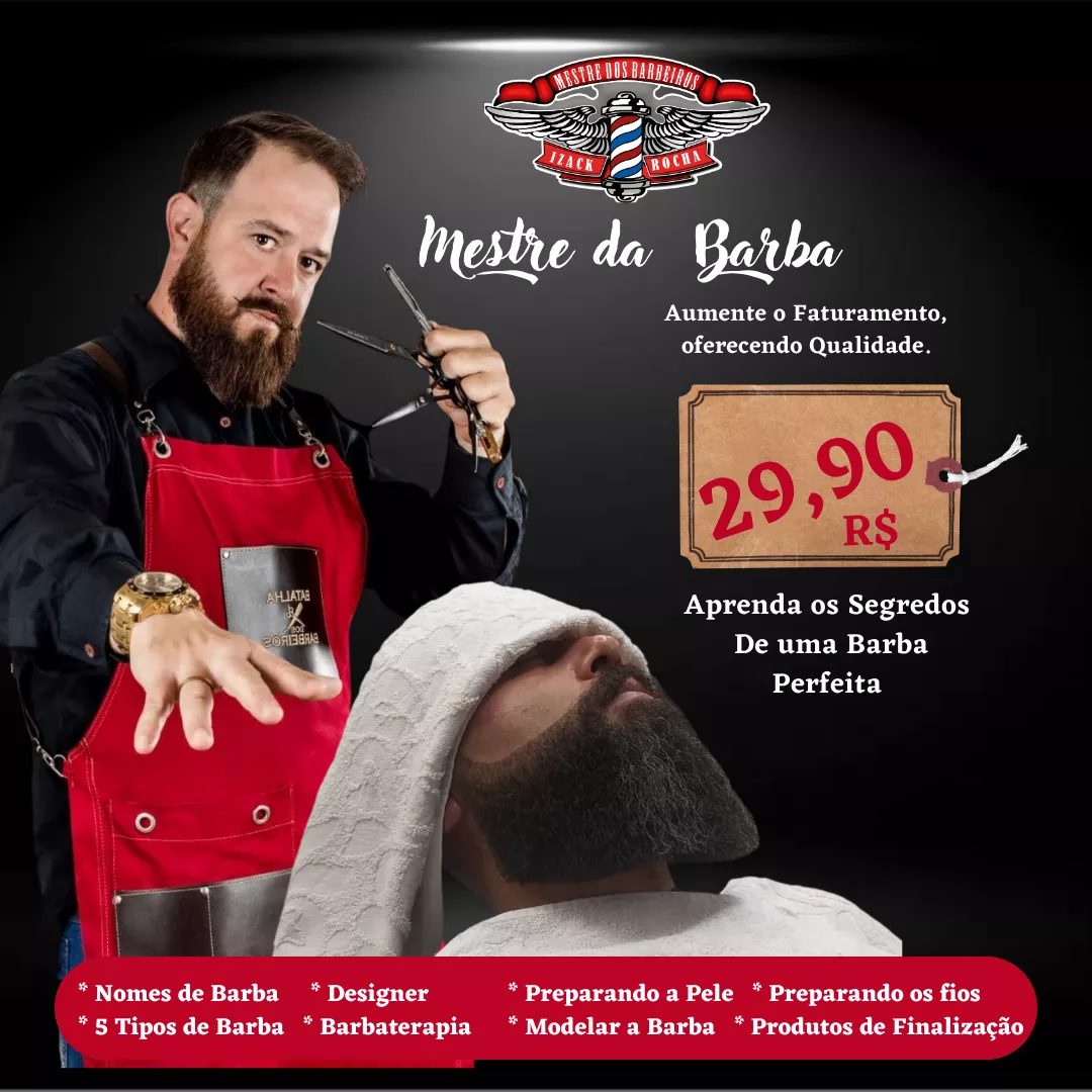Domine as técnicas avançadas para cuidar da barba com o Curso Mestre da Barba. Neste curso, você irá aprimorar seus conhecimentos sobre o cuidado da barba, aprender novas técnicas e se tornar um barbeiro ainda mais completo. Com a orientação de especialistas em barbearia, você irá aumentar o número de serviços prestados e cobrar mais caro pelos seus serviços. Com o Mestre da Barba, você irá dominar todas as técnicas para cuidar da barba dos seus clientes e se tornar um barbeiro de sucesso. Não perca mais tempo e adquira o curso agora mesmo! INCLUSO 2 BONUS